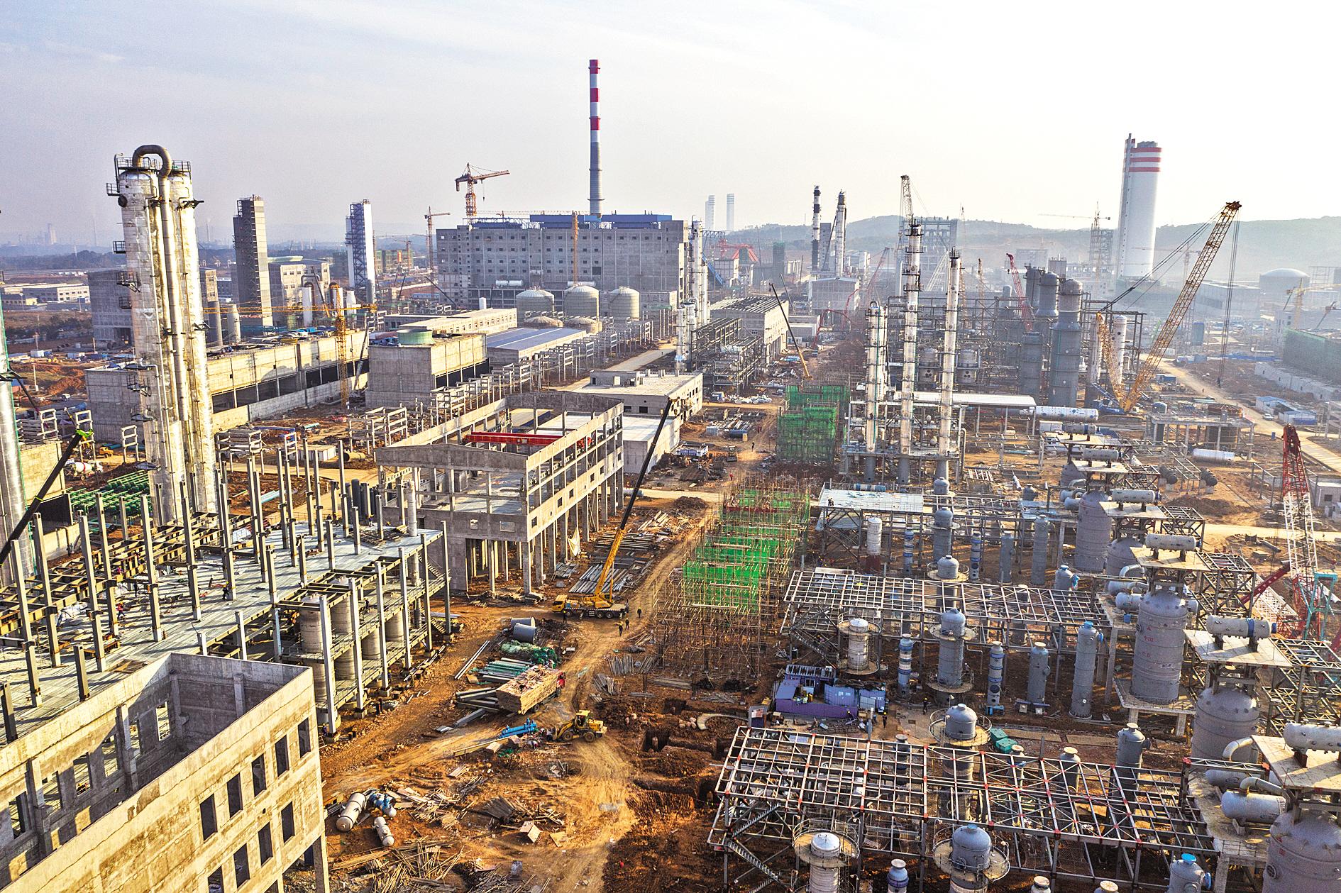 隆冬时节,枝江姚家港化工园区,绵绵细雨中的湖北三宁化工股份有限公司乙二醇项目建筑愈显雄伟。