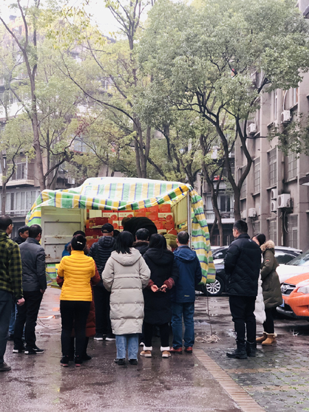 1月15日,昭君镇滩坪村的村民冒雨将农产品送到了经信局院内。