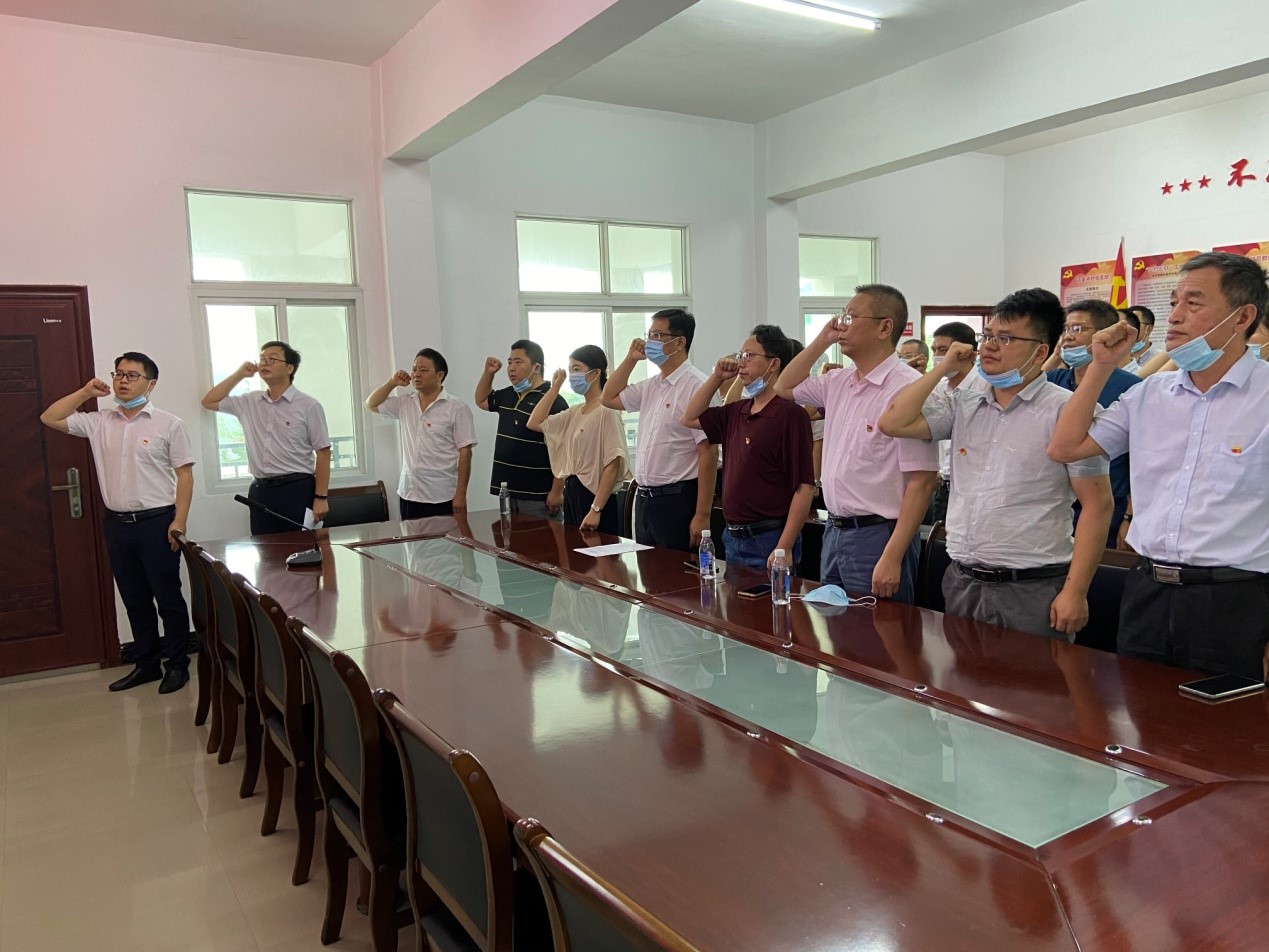 在许家冲村党员会议室,全体党员庄严地举起右拳,重温入党誓词。许家冲村党支部副书记朱崇军用朴实的语言讲述了党员怎么服务群众、怎么带领党员干部为群众干实事,讲述了许家冲村以党建引领乡村振兴,带领人民群众走向幸福生活。一个个生动的故事、一件件鲜活的案例触动了在场的每一位党员。