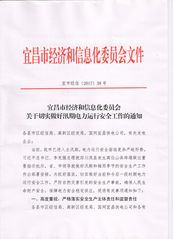 关于切实做好汛期电力运行安全工作的通知