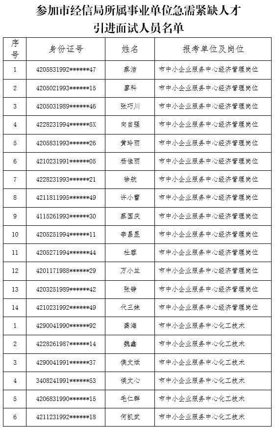 详见附件《参加市经信局所属事业单位急需紧缺人才引进面试人员名单》