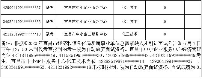 2020年宜昌市经济和信息化局所属事业单位急需紧缺人才引进面试成绩和进入体检人员公告