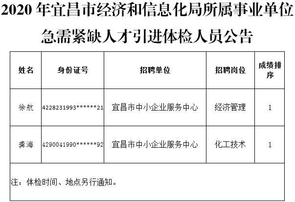 2.2020年宜昌市经济和信息化局所属事业单位急需紧缺人才引进体检名单公告